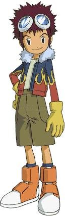 Daisuke's first experience with Digimon was in the year 1999, he was one of the children brought before Vamdemon during his reign of terror over the city of Odaiba. Like everyone else, the experience sort of faded from his memory until he met Michael and he and the others remembered their first introductions to Digimon. Perhaps Daisuke's most defining trait is his intense jealousy towards anyone he sees as a rival for Hikari's affections, not the least of whom is Takeru. When Takeru transfers into their class at the beginning of the school year, Daisuke immediately starts acting like a jerk when it becomes apparent that Takeru and Hikari know each other. He even pushes V-mon to evolve to Champion so that he can show off in front of Hikari. This obsession seems to fade by the end of the series, so much so that when confronted with Belial Vamdemon's tricks, Daisuke is able to say that he has no desires in this world.