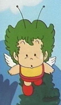 Gadzilla "Gatchan" Norimaki #1 & 2 are green-haired, cherub-like creature with wings. Originally one hatched from an egg brought home by Senbei from a time traveling trip. Later on it inexplicably replicates into a second one. Gatchan eats almost anything, except for rubber as seen in "Gatchan Goes for a Walk", and particularly likes to eat metal. She/he can also shoot rays from his/her antennae. Gatchan speaks in his/her own language consisting primarily of sounds like "pupipopipi" that Arale somehow seems to understand. It has been named Gatchanism by the manga. Although Gatchan has no defined gender, the manga constantly refers to it as her.