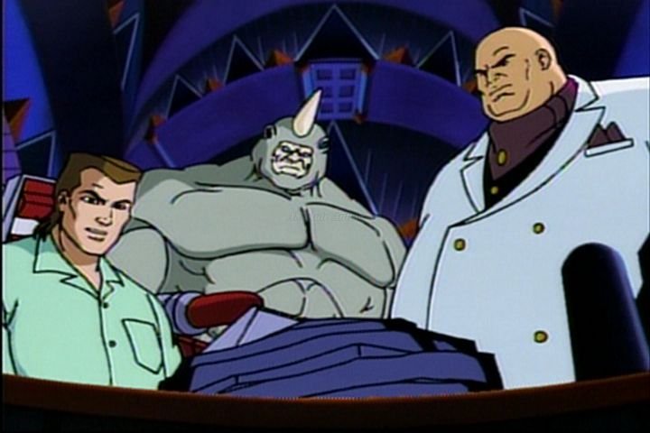 Rhino, called in by Kingpin to steal the rock samples, runs into Spider-Man before he has a chance to escape undetected. He still gets away, however, as Spider-Man has to save the shuttle crew. After that task is done, he hears something inside the shuttle, and goes to check it out, but the shuttle falls off the bridge and poor Spidey ends up in the water. Oh yeah, and all the while, B rock, who has a serious beef with Spider-Man and who just happened to be on the bridge at the time of the crash, captures the whole event with his camera. Of course, when he brings the photos to B. Jonah James on, he leaves out the ones of Rhino in order to frame Spider-Man for the theft.