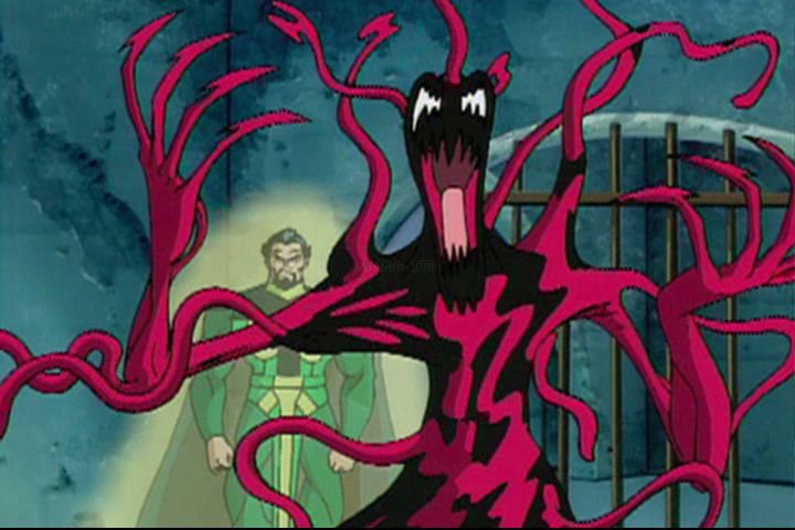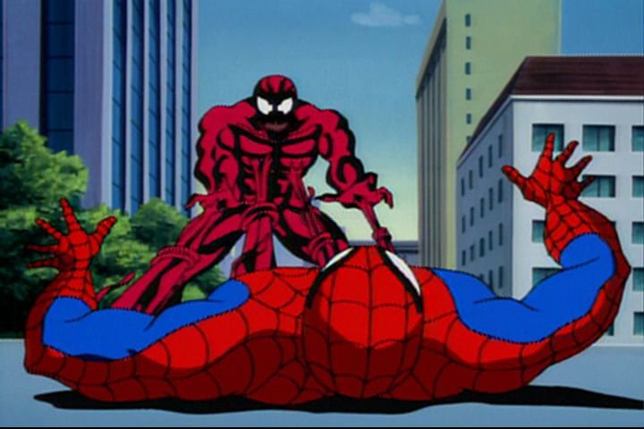 With his new powers, achieving this goal is no problem, but getting rid of the suit is more difficult than anticipated. When he does finally manage to get it off, it seeks a new host, that of Eddie B rock. B rock's hatred of Spider-Man combined with the power of the symbiotic sludge transforms the two beings in a creature more powerful than Rhino, Shocker, or even our own friendly neighborhood Spider-Man... the maniacal Venom! And if that wasn't bad enough, the second Venom chapter introduces a villain even more power than Venom... another symbiotic monster, the offspring of Venom, combined with a homicidal psychopath to create Carnage! Our hero's gonna need help from Iron Man, War Machine, and even Venom himself if he's to have any hope of stopping Carnage from bringing a super-destructive being into our dimension!