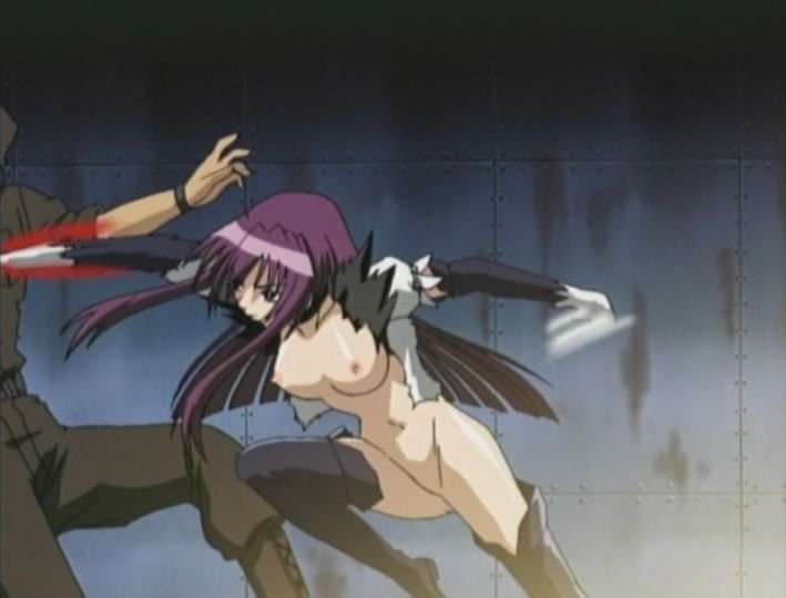 But I'm getting ahead of myself. Volume one starts off not on Yu, but on some purple haired girl whose hands are bound by a chain to the ceiling. Three men are in the room with her, all of whom are sporting military-like threads, and they apparently want some information that miss busty purple-haired girl has... though even after a few strikes of a whip, she is unwilling to talk. So her captors try another tactic: pouring some gooey gel substance over her now-tender breasts. Apparently it's some kind of truth serum or something. At any rate, off come her clothes and the fun begins.