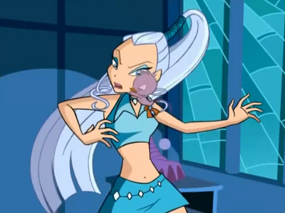 Icy is the leader of the Trix and the eldest of the three witches. She is described to be cruel and ruthless. She attacks her victims with her icy power like freezing rays and snow storms. Icy appears to have long high rise ponytail hair and she has no love interest.